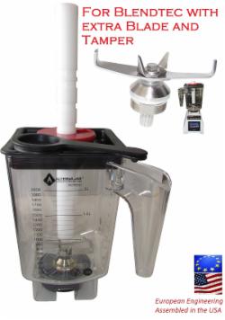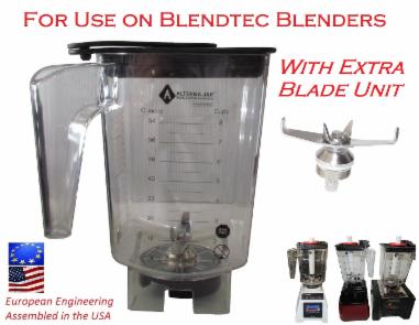 The Alterna aftermarket replacement container sits straight on all Blendtec Classic Series, Blendtec Total Blender, Blendtec HP3A, Blendtec Professional blenders without sound enclosure, Smoother without sound enclosure, Blendtec Designer 625 and all other Designer model blenders, the Blendtec EZ blender, and Tom Dickson's special mega blender. The Alterna better replacement jar replaces the Wildside Jar, the Fourside Jar, and the Twister Jar. Better blending, finer, smoother! To top blending quality off and make things really interested - common sense - duh - The Alterna replacement blades and knives are actually made with sharpened edges. Sharp is better. Have you seen your Samurai with a dull sword lately? Plus, now that the blades are exchangeable and interchangeable, guess what, this opens up the opportunities for different blade styles to be used, all on your already fantastic Blendtec blender.